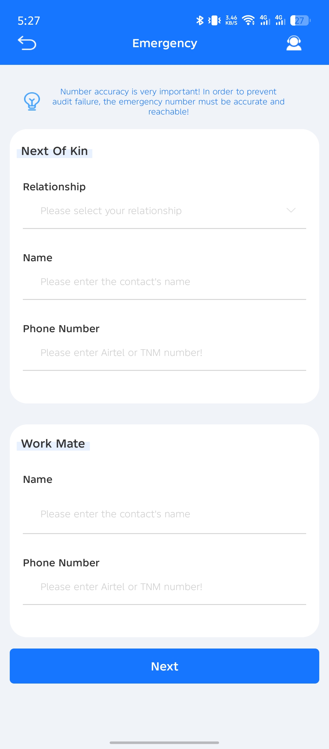 - Phone number of your next of kin