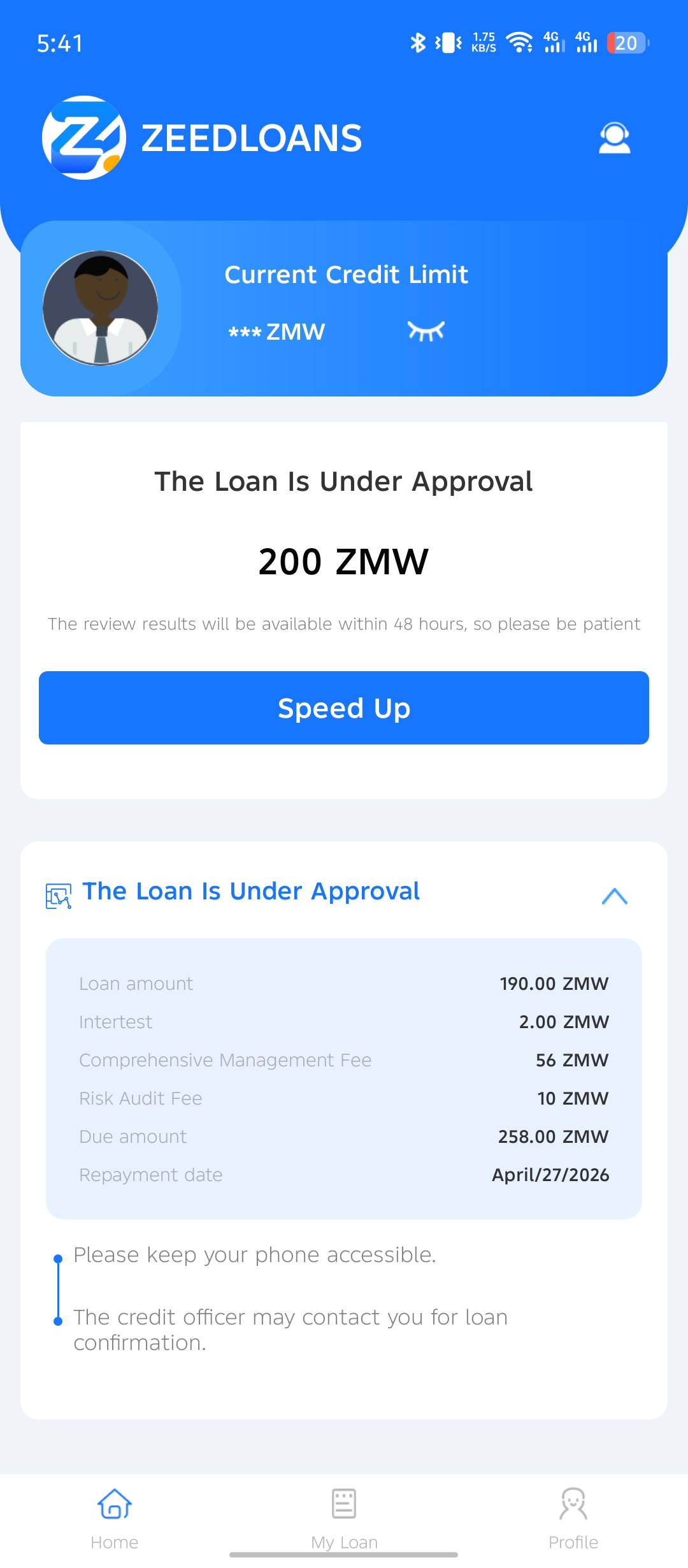 Zeed loan gives you the aility to raise the level of prioiyy for your loan application. You can tap ‘Speed Up’. This apparently pushes you aplicaton to the top for the reviewers to look at your application as soon as possible. In my experince, the loan only took less than 10 mintes from submitting the appliction to actually getting the money in my mobile money accounnt.